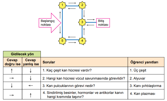 • Oyuncunun verdiği cevaba göre gideceği yön ok işaretleriyle gösterilmektedir.