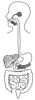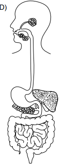 Sindirim sistemine ait aşağıdaki şemalardan hangisi organların yeri ve birbirlerine bağlantıları bakımından doğru çizilmiştir?