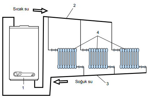 Evlerin ısıtılmasında kullanılan sistemde numaralanmış bölümler ile dolaşım sistemine ait yapılar aşağıdakilerin hangisinde doğru bir şekilde eşleştirilmiştir?